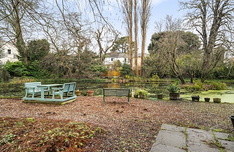 To the rear, the communal garden enjoys a tranquil lawned area with an enclosed picturesque lake that attracts an abundance of wildlife, creating a peaceful setting to enjoy for hours on end. To the front, there is communal parking , along with additional green spaces. Further benefits are double glazing, gas central heating, retained original features including pocket door and original parquet flooring to main living areas.