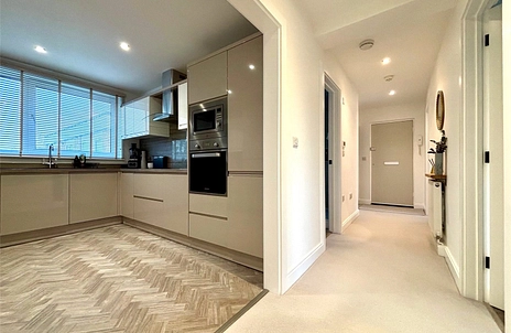 Accommodation briefly comprises a central entrance hall with a cloaks cupboard leading to a living /dining room with a sunny triple aspect, and patio doors onto a southerly balcony. This room measures an impressive 25'6 x 12'11 and features a hand-built fitted entertainment cabinet, a large bay window, and clear separation of dining and living areas. A stylish fitted kitchen provides lots of preparation surface making it a chefs dream. Integral appliances include a high level grill /microwave, high level fan assisted oven, an induction hob with cooker hood, dishwasher, and fridge /freezer. There is a separate utility /cloak room, two double bedrooms with built-in wardrobes, and a stylish bathroom with a panelled bath and shower.