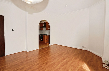 Boasting high ceilings that enhance the sense of space, the light and airy living/dining room measures approximately 14'4" x 12'9" and benefits from an open aspect leading into the kitchen. The kitchen is fitted with a range of wood-effect storage units, a five-ring gas hob, a new electric oven with extractor hood above, and space for a fridge/freezer and additional appliances. A skylight allows for natural light.