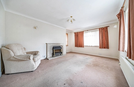 Requiring updating throughout, the property comprises an entrance hall leading to a spacious living room, two good-sized bedrooms, a fitted kitchen, and a shower room. The kitchen provides access to a bright sun room, which enjoys views over the low-maintenance, paved rear garden.