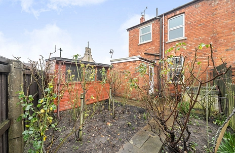 Outside, the enclosed rear garden measures approximately 19ft (max) and features flower beds, paving, a garden shed, and side access.