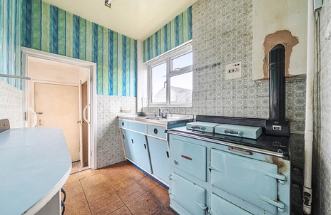 The property is approached via a walled front garden with a pathway to the entrance. The accommodation briefly comprises an enclosed porch leading to a hallway with stairs to the first floor, a living room, a dining room, a kitchen with a wood-fired cooker (which may effect a mortgage application), a downstairs WC and a storage room.
