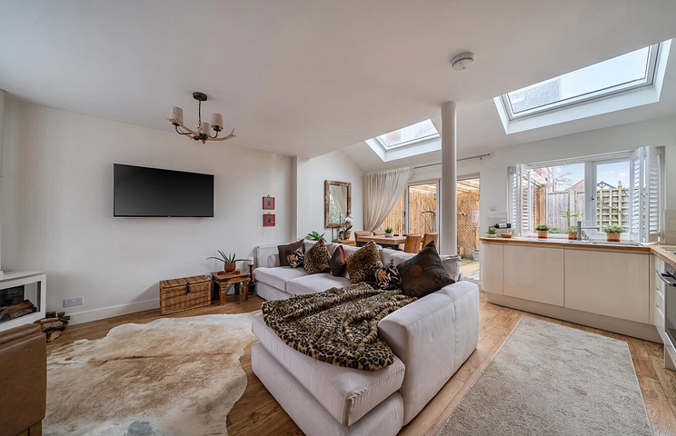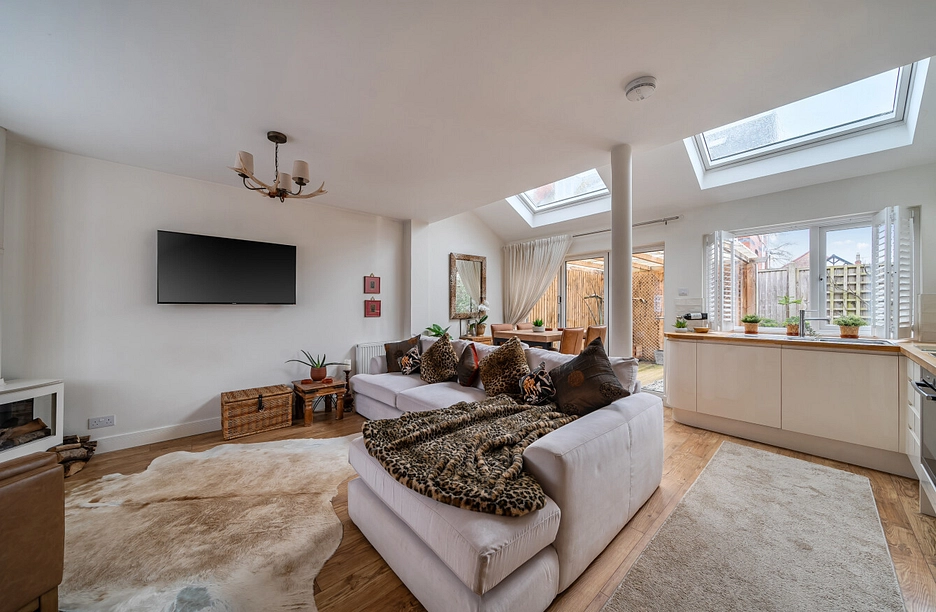 Upon entering this welcoming and much-loved home, the ground floor accommodation briefly comprises an entrance hall with staircase and doors leading to the modern bathroom, as well as an impressive, light and airy open-plan fitted kitchen, dining and living area. Bi-fold doors open onto the southerly facing rear garden, creating an ideal space for both everyday living and entertaining.