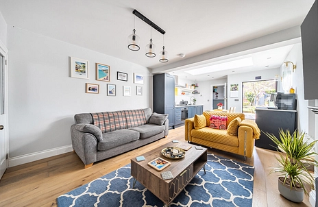 Contemporary throughout, yet still retaining lovely period features, the accommodation briefly comprises an entrance hallway with feature wooden panelling, a front living room with a cast iron fireplace, wooden flooring and decorative wall panelling and a stunning kitchen/dining room measuring approximately 23'0" x 12'9". The modern kitchen boasts a range of storage units and integrated appliances, with a large skylight providing a bright and airy space. A door leads to a convenient WC/utility room.
