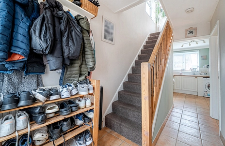 Upstairs, the property comprises three bedrooms and a family bathroom. Bedrooms one and two are well-proportioned doubles, while the third bedroom makes an ideal child’s room, guest room or home office. The family bathroom is fitted with a white suite and finished with stylish red metro tiles.
