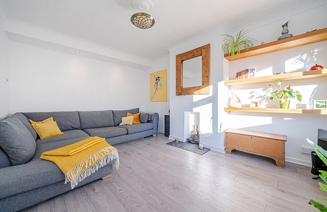 The accommodation is surprisingly light and airy, and briefly comprises a welcoming entrance hallway leading to the front living room and the attractive, refitted modern kitchen/dining room, which features sliding doors opening into the rear garden.