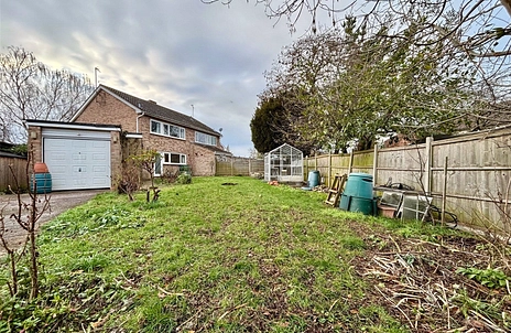 Accommodation briefly comprises an entrance hall, cloakroom, large living /dining room, and kitchen. Upstairs there are three good-size bedrooms and a family bathroom. Outside provides a lawned frontage overlooking the green, with gated side access leading to a large attached garage with electric roller door, driveway parking for several vehicles, and a large rear garden with lawn and patio area.