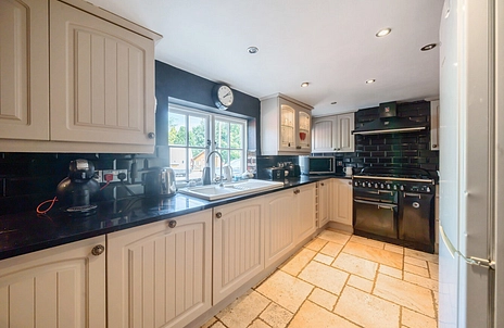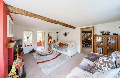 Upon entering the property, a useful porch leads into the welcoming dining room/reception area, complete with charming character beams, setting the tone for the home's rustic appeal. The cosy living room features a delightful fireplace, perfect for relaxing evenings, and opens into the sunroom, which overlooks the lush, tranquil garden. Bursting with exotic plants and greenery, this outdoor space provides a serene escape. The kitchen is stylishly appointed with shaker-style cabinets and sleek black metro tiles, offering both practicality and elegance. Completing the downstairs layout is a contemporary shower room and a large utility room for added convenience.