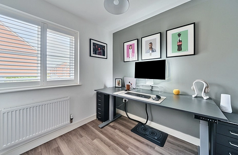 Both the living room and study enjoy a bright front-facing aspect, with the living room enhanced by an elegant bay window. The kitchen/dining/living area has been upgraded to a premium finish, with quality flooring, contemporary units, quartz worktops and plumbing for all major appliances.
