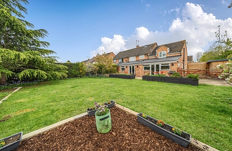 Externally, the property continues to impress with a substantial garden wrapping around the side of the house. Acoustic fencing has been thoughtfully installed, offering excellent privacy and making the garden ideal for entertaining. A large patio area sits directly off the kitchen, with the remainder mainly laid to lawn. There is also an additional garden room/studio, perfect for a home office. The cleverly designed fencing incorporates a large gate, allowing secure parking for a campervan or caravan if required.
