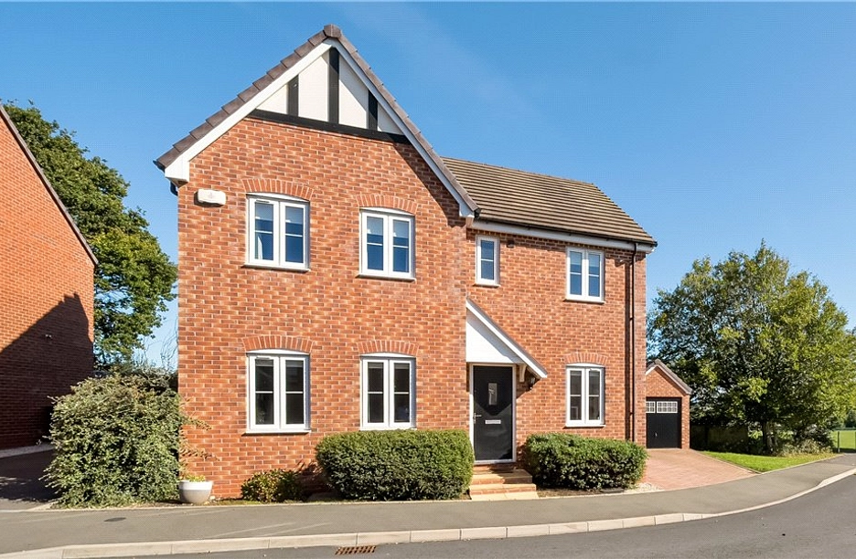 Nestled at the end of a quiet cul-de-sac in the charming village of Twyning, this spacious and modern 4-bedroom detached home offers comfortable family living in a serene setting. The outlook is across a large well maintained green common area, with views of rural fields and the local playing fields, offering village living with a truly countryside feel. With a detached single garage, double block-paved driveway, and an electric car charging point, this property is both practical and stylish.