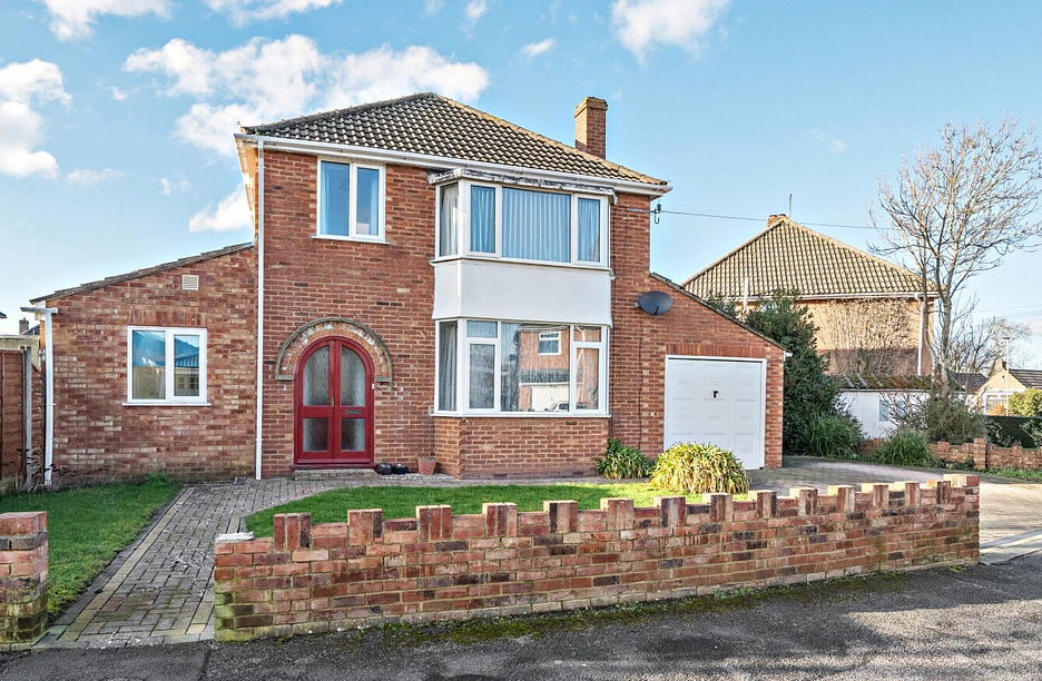 The house is set several metres back from the road, providing an open front garden with a paved pathway and driveway offering off-road parking for two to three vehicles, leading to the garage and front entrance. The property has been extended and as it stands, offers excellent potential for further updating.