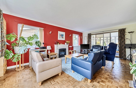The property affords much natural light, is immaculately presented and thoughtfully arranged throughout. The ground floor is entered via a welcoming reception hallway featuring fitted storage, internal access to the integral double garage, and an attractive bespoke oak staircase. A superb triple-aspect sitting room forms the heart of the home, centred around an elegant marble fireplace and flowing seamlessly into a bright sun room with an insulated roof, creating a wonderful space for both relaxation and entertaining.