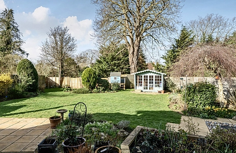 Externally, the property is equally impressive. The front garden is attractively landscaped with lawn and flower borders, complemented by a driveway providing ample off-road parking and access to the large attached double garage. To the rear lies a beautifully established and highly private garden enjoying a desirable westerly aspect. Designed with both relaxation and entertaining in mind, it offers a generous lawn, a decked seating area, and a charming summer house.