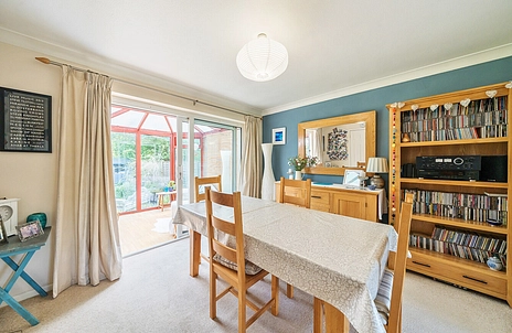 The spacious, family-focused accommodation includes a welcoming entrance hallway with storage, a bright living room, separate dining room, conservatory and convenient downstairs cloakroom. The modern kitchen, complete with built-in hob, double oven and dishwasher, enjoys lovely views across the large, peaceful garden.